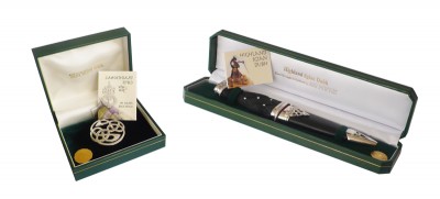 Our Jewellery and Clan Crest Regalia ranges are supplied as standard on a Backing Pad, with flatpack Pillow Box - designed to fit our rotating display stands.